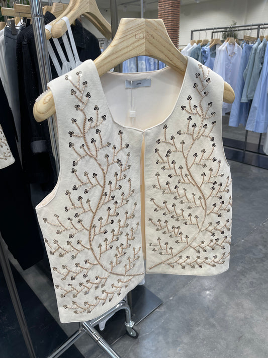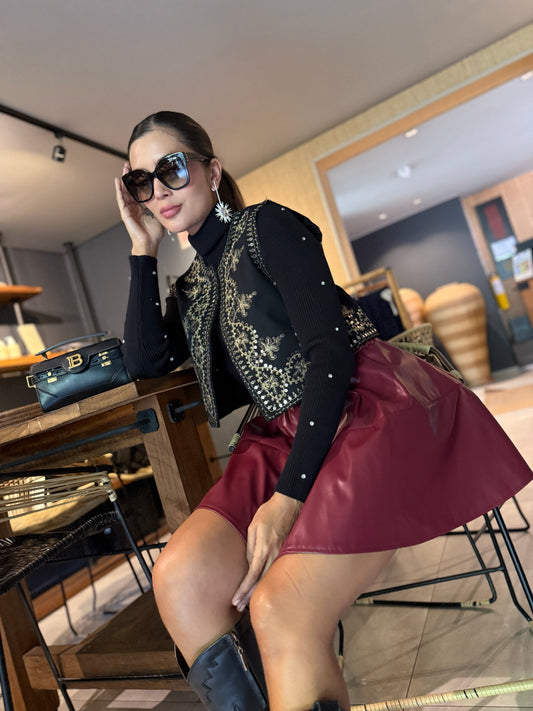 Chaleco negro con bordado vaquero dorado